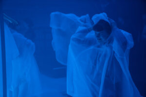 This is an invitation to an assemblage-in-motion where the translucent and the blurry are explored. Where the body is not discrete, and multiplicity and fuzziness are welcomed. Stillness will be present along with the traces of a trajectory in space.