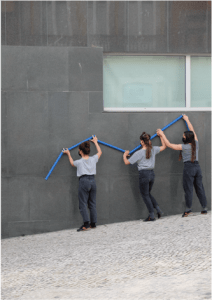 The work sets out to investigate the textures of the public realm. To frame and reframe the city, and to create interactions between the performers and the passers-by, thus suggesting new ways of seeing and existing together with or in common spaces.